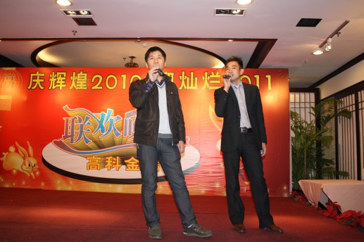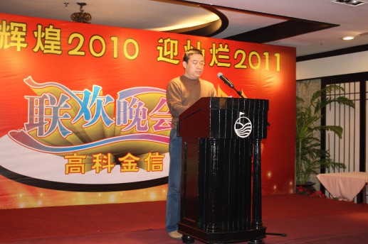 2011.1.7,高科金信在觀瀾高爾夫鄉(xiāng)村俱樂部帝軒大廳舉辦了一場主題為“慶輝煌2010,迎燦爛2011”的聯(lián)歡晚會老總致辭,總結(jié)2010年輝煌成就,展望2011年無限前景老總頒獎,鼓勵默默為高科金信奉獻的精英骨干高科金信兩大歌王傾情演繹“真心英雄”高科金信精英層與老總合影