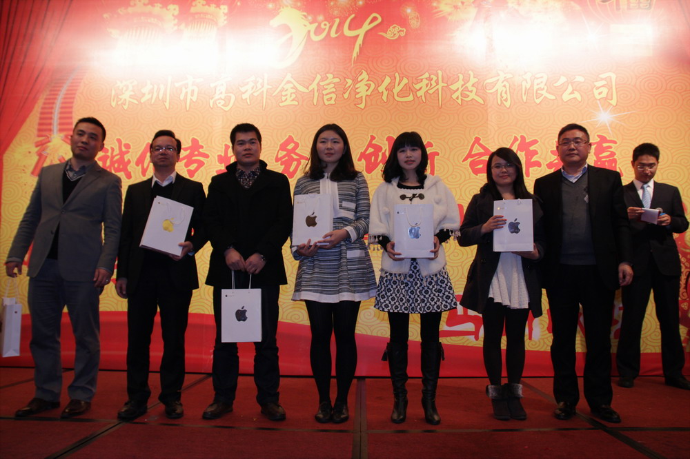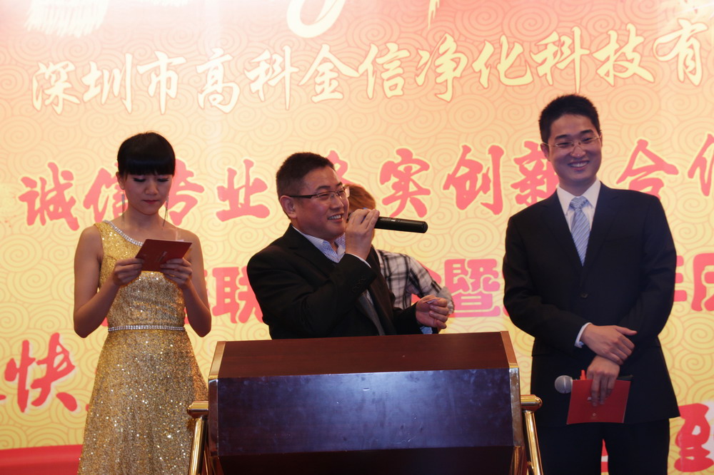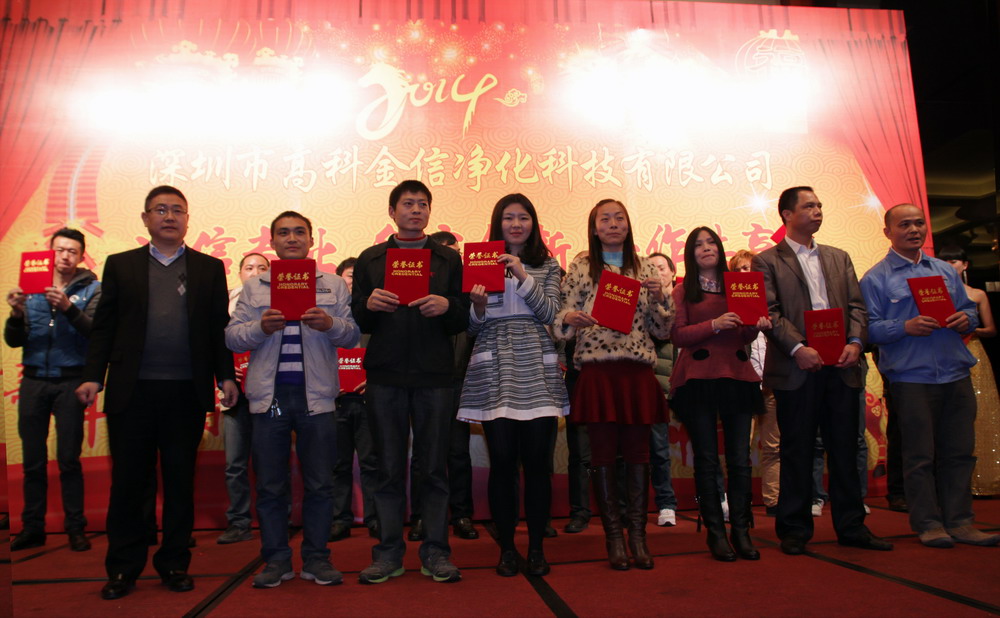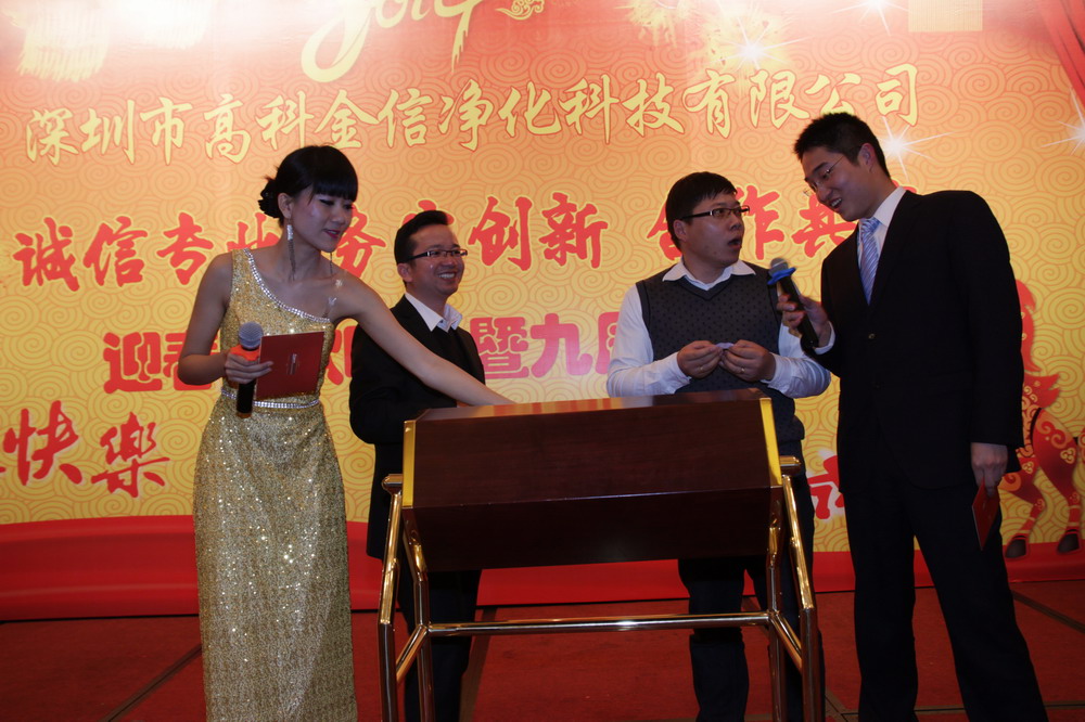 為提升高科金信大家庭的團(tuán)隊(duì)凝聚力,總結(jié)表彰2013年各個(gè)部門的優(yōu)秀員工與團(tuán)隊(duì),鼓勵(lì)在新的一年里再接再勵(lì),創(chuàng)造出更加輝煌的成績,讓公司在積極進(jìn)取的良好氛圍中茁壯成長,并進(jìn)駐更多行業(yè)領(lǐng)域,取得長遠(yuǎn)綜合性發(fā)展,同時(shí)感謝一如既往支持和關(guān)心公司發(fā)展的嘉賓、客戶、協(xié)力廠商,公司于2014年1月15日晚上在深圳觀瀾格蘭云天國際大酒店3樓宴會(huì)廳舉行了“誠信專業(yè)、務(wù)實(shí)創(chuàng)新、合作共贏”2014迎春聯(lián)歡暨九周年慶典晚會(huì)。