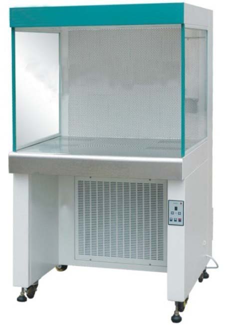 采用超薄型無隔板過濾器,將靜壓箱尺寸縮到最小,再配以不銹鋼臺(tái)面和玻璃側(cè)擋板。